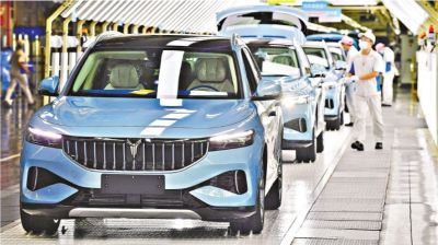 6月30日,智能新能源SUV藍途FREE在武漢經(jīng)濟技術(shù)開發(fā)區(qū)藍途汽車智能制造基地生產(chǎn)線上。